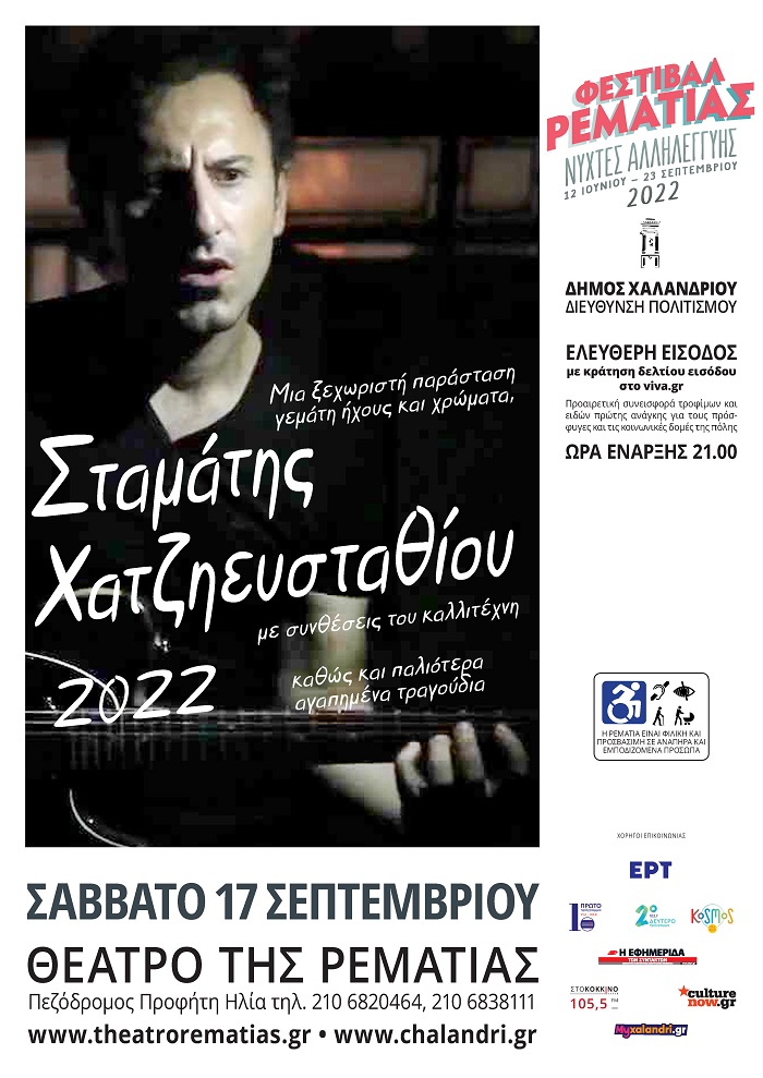 Τη συναυλία “Σταμάτης Χατζηευσταθίου 2022” φιλοξενεί το Φεστιβάλ Ρεματιάς 2022 - Νύχτες Αλληλεγγύης, το Σάββατο 17 Σεπτεμβρίου, με τον καλλιτέχνη που ταξιδεύει σε κάθε γωνιά της Ελλάδας, να κάνει στάση στη Ρεματιά για «μια ξεχωριστή παράσταση γεμάτη ήχους και χρώματα», βασισμένη σε παλιές δισκογραφικές του δουλειές (Από κουρέλια νυφικό, Σαν των ανθρώπων τις φωνές) αλλά και σε νέες (Κι ύστερα έρχεται η αγάπη), διανθισμένη με τραγούδια γνωστά κι αγαπημένα.