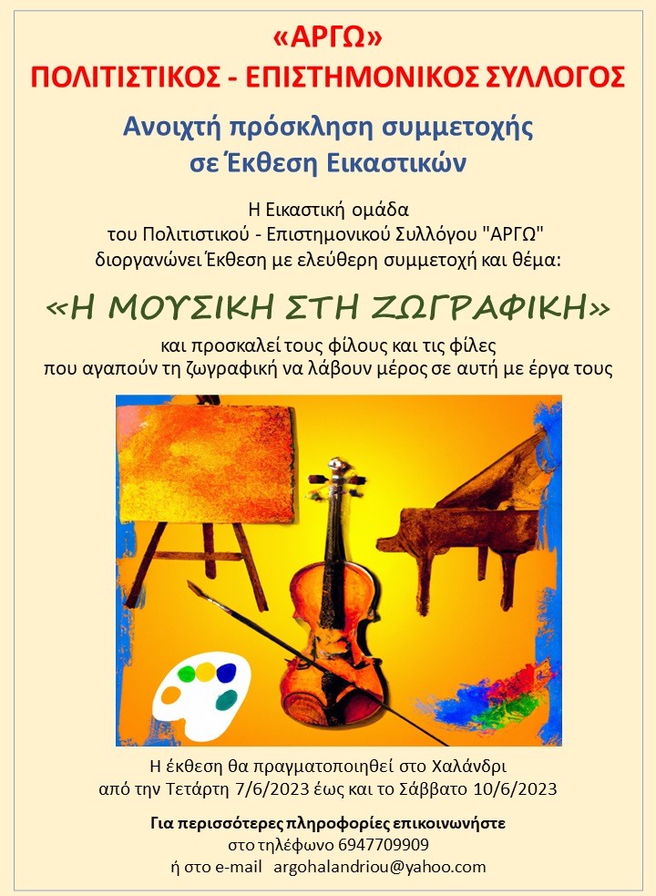Σύλλογος Χαλανδρίου ΑΡΓΩ: Ανοιχτή πρόσκληση συμμετοχής στην έκθεση εικαστικών “Η Μουσική στη Ζωγραφική”