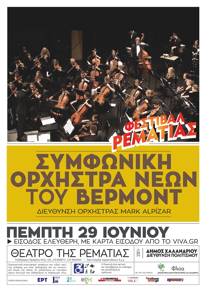 Με μια μεγάλη συναυλία από τη Συμφωνική Ορχήστρα Νέων του Βερμόντ των ΗΠΑ (Vermont Youth Orchestra - VYO) ανοίγει το πρόγραμμα του Φεστιβάλ Ρεματιάς 2023 - Νύχτες Αλληλεγγύης, την Πέμπτη 29 Ιουνίου.