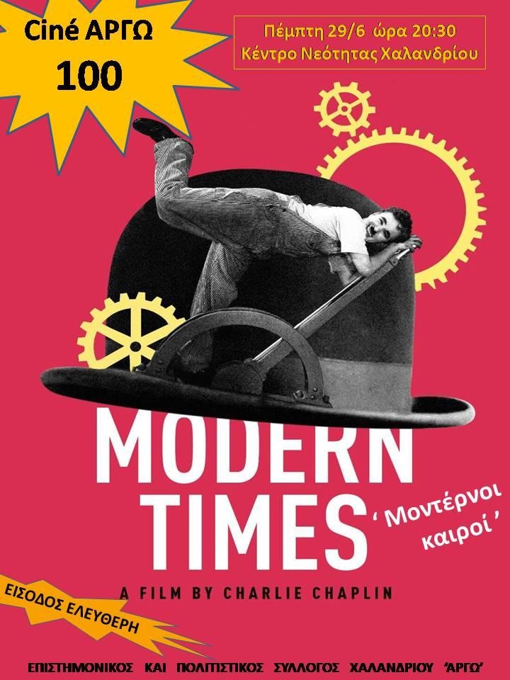 O Πολιτιστικός - Επιστημονικός Σύλλογος Χαλανδρίου «ΑΡΓΩ» συνεχίζει τα ταξίδια του Cine ΑΡΓΩ με την επετειακή προβολή της ταινίας «Modern Times».