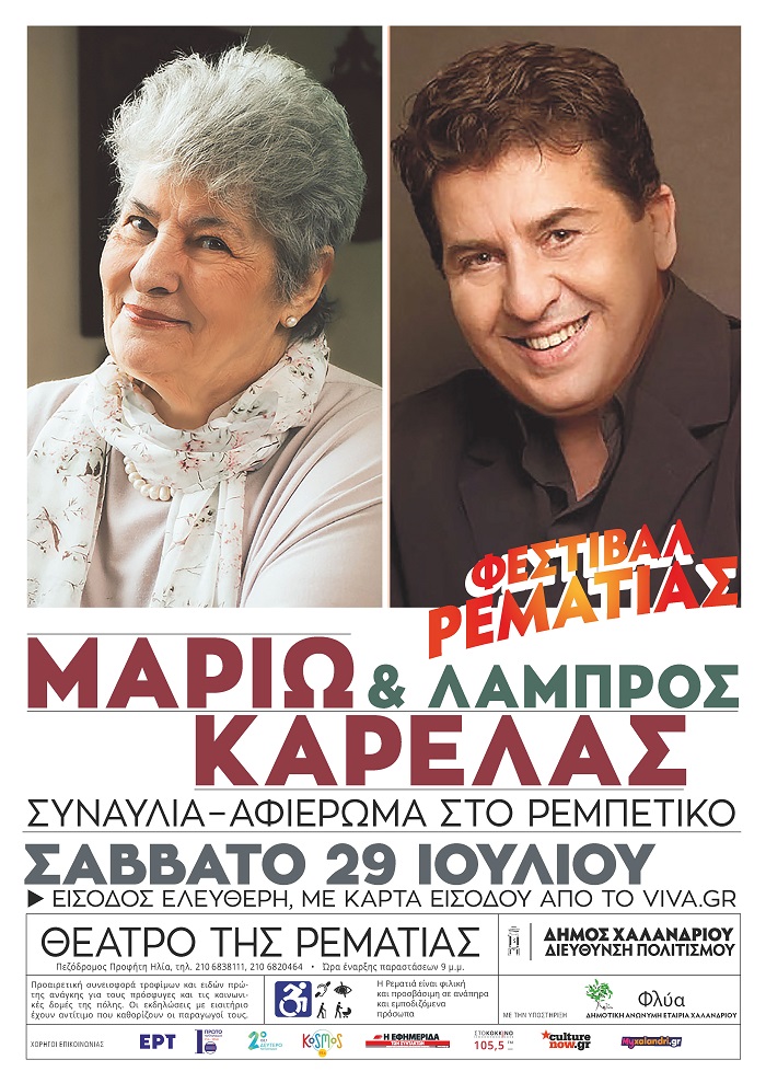 Συναυλία - αφιέρωμα στο ρεμπέτικο και μικρασιάτικο τραγούδι με τη Μαριώ και τον Λάμπρο Καρελά παρουσιάζει το Φεστιβάλ Ρεματιάς 2023 - Νύχτες Αλληλεγγύης, το Σάββατο 29 Ιουλίου.