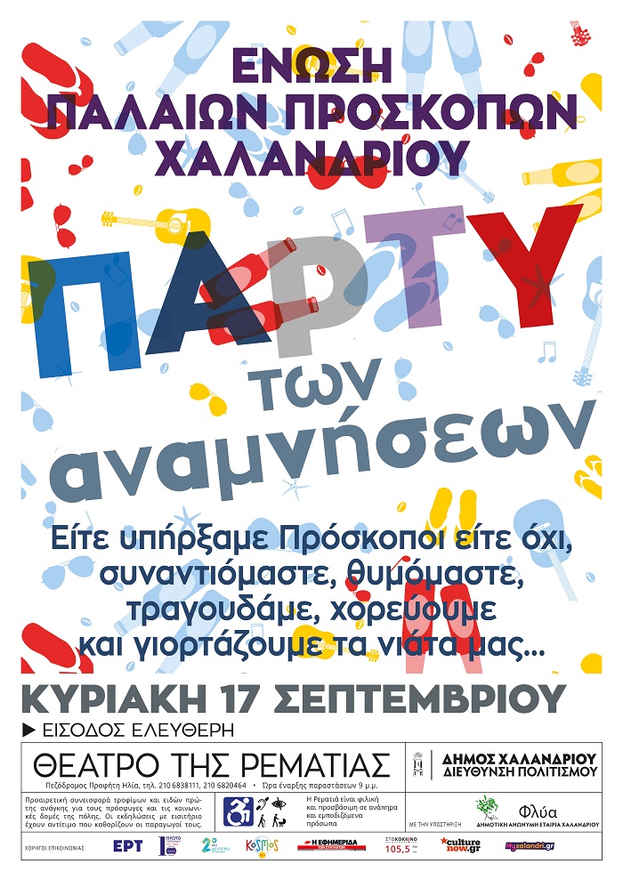 Σε ένα μεγάλο ανοιχτό πάρτυ, που αναβιώνει την ατμόσφαιρα των ‘60s και ‘70s και υπόσχεται μια αξέχαστη βραδιά με ρετρό διάθεση, στο Φεστιβάλ Ρεματιάς 2023 - Νύχτες Αλληλεγγύης, μας προσκαλεί την Κυριακή 17 Σεπτεμβρίου η Ένωση Παλαιών Προσκόπων Χαλανδρίου «για να συναντηθούμε, να θυμηθούμε, να τραγουδήσουμε, να χορέψουμε και να γιορτάσουμε τα νιάτα μας είτε υπήρξαμε πρόσκοποι είτε όχι».