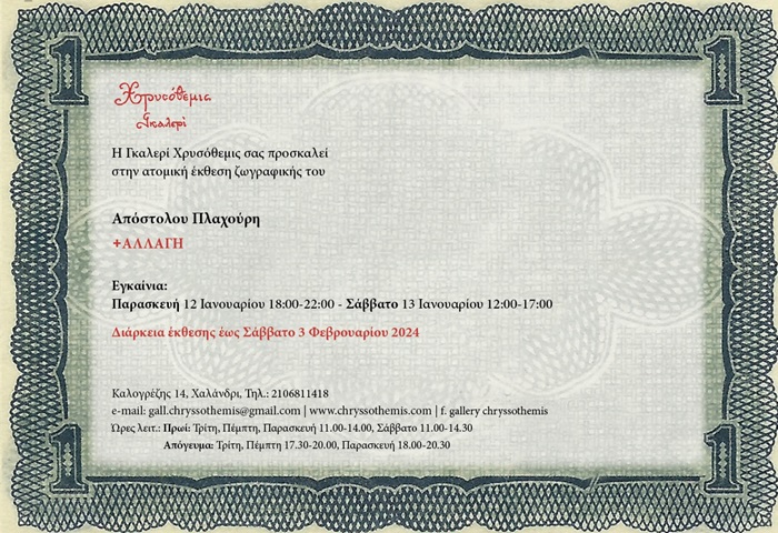“+ΑΛΛΑΓΗ”: Έκθεση ζωγραφικής του Απόστολου Πλαχούρη στην Γκαλερί Χρυσόθεμις, στο Χαλάνδρι