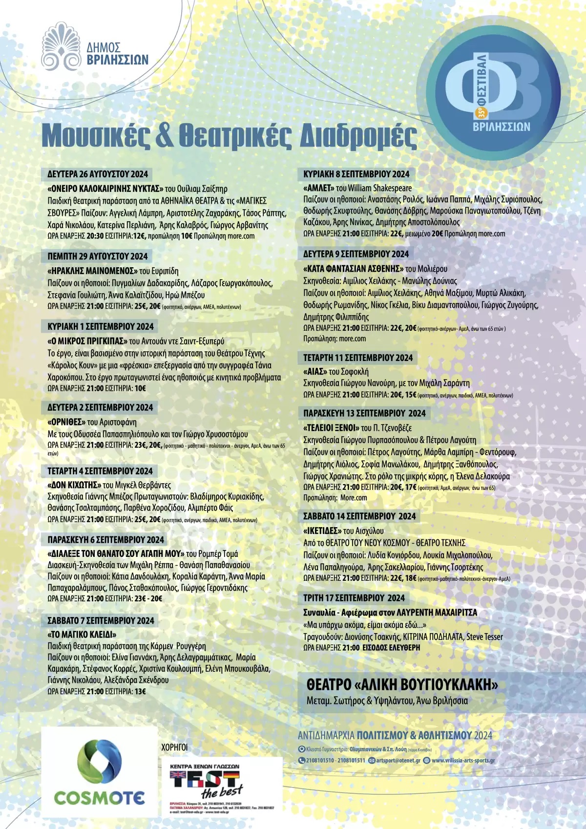 Μουσικές και Θεατρικές Διαδρομές 2024: Το πρόγραμμα του 35ου Φεστιβάλ Δήμου Βριλησσίων