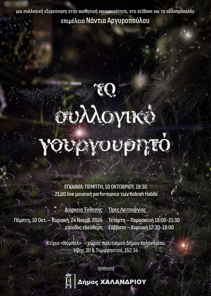 Την Πέμπτη 10 Οκτωβρίου 2024, στις 19:30, θα πραγματοποιηθούν τα εγκαίνια της μεγάλης εικαστικής έκθεσης με τίτλο «Το συλλογικό γουργουρητό» που διοργανώνει ο Δήμος Χαλανδρίου, στο κτήριο Νόμπελ (Ήβης 30 & Τυμφρηστού), που είχαν αναβληθεί λόγω της τραγικής απώλειας του επί δέκα έτη αντιδημάρχου Πολιτισμού, Σέργιου Γκάκα.