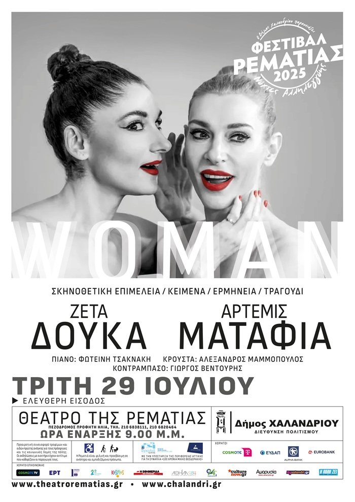 Την Τρίτη 29 Ιουλίου, το διαδραστικό WOMAN έρχεται να υπενθυμίσει ευγενικά και... μελωδικά, τη Δύναμη και τη διαρκή προσφορά της Γυναίκας μέσα από τη Μουσική που συνυφαίνεται με πραγματικές Ιστορίες, του κάποτε, του τώρα και του πάντα...