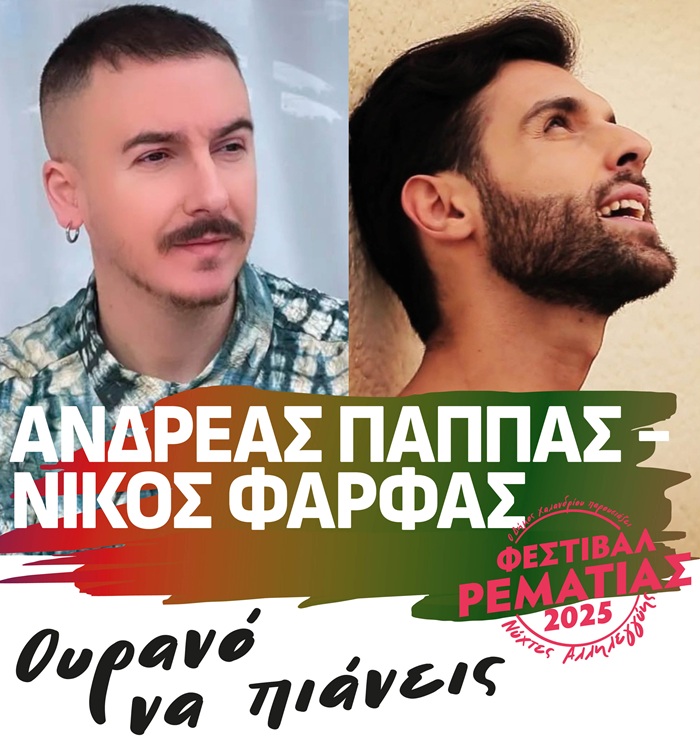 Την Παρασκευή 1 Αυγούστου, το Φεστιβάλ, πιστό στις αρχές του, δίνει και πάλι βήμα στους νέους καλλιτέχνες της πόλης. Αυτή τη φορά, στη σκηνή του Θεάτρου της Ρεματιάς, ανεβαίνουν ο Ανδρέας Παππάς και ο Νίκος Φάρφας για να μας τραγουδήσουν κομμάτια από το έντεχνο μέχρι το παραδοσιακό ελληνικό τραγούδι, καθώς επίσης και τραγούδια από τη δική τους δισκογραφία.