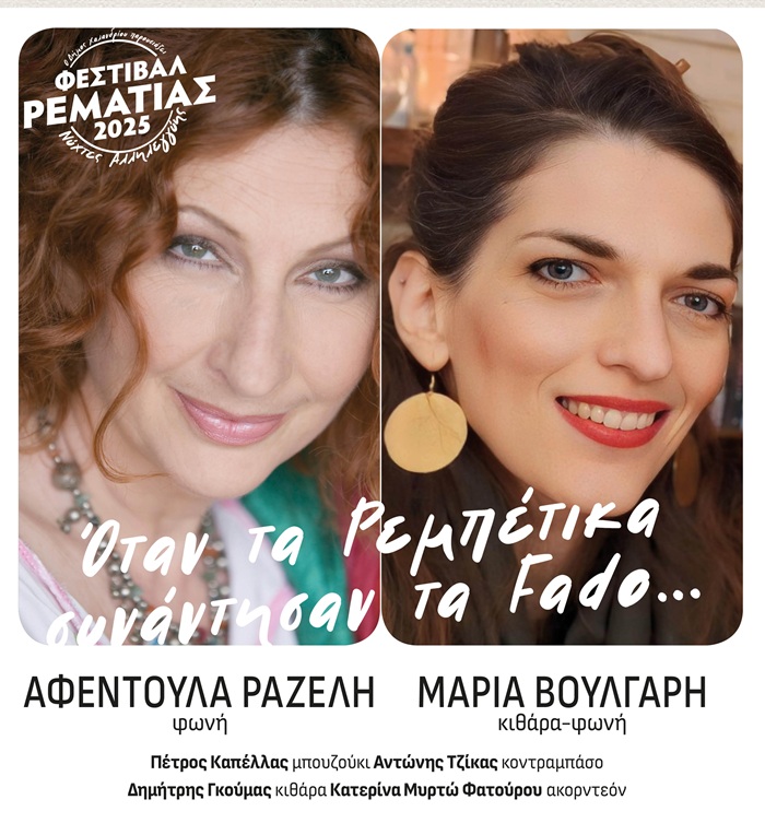 Το Σάββατο 2 Αυγούστου, κλείνει ο πρώτος κύκλος του φετινού Φεστιβάλ με μια μοναδική μοναδική συνάντηση πολιτισμών. Σε μια ξεχωριστή μουσική βραδιά, δύο εμβληματικά είδη, τα ρεμπέτικα και τα πορτογαλικά fado, χαρακτηρισμένα από την UNESCO σαν άυλη πολιτιστική κληρονομιά, συναντώνται σε έναν συγκινητικό μουσικό διάλογο γεμάτο πάθος και νοσταλγία.