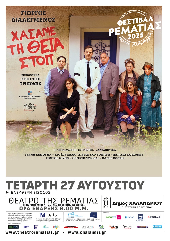 Παίζουν: Θύμιος Διαμάντης, Ίρις Κατσούλα, Κώστας Κουτρούλης, Παναγιώτης Κοντάρης, Μαρία Παπαϊωάννου, Μαρίνα Σαμαρά, Ηρώ Σταφυλάκη