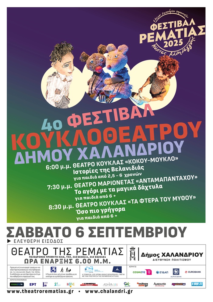 Σάββατο 6 Σεπτεμβρίου: 4ο Φεστιβάλ Κουκλοθέατρου Δήμου Χαλανδρίου