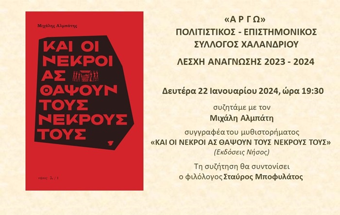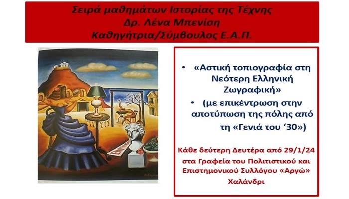 Ο Πολιτιστικός - Επιστημονικός Σύλλογος Χαλανδρίου ΑΡΓΩ έχει τη χαρά να ανακοινώσει τη διοργάνωση ενός νέου κύκλου μαθημάτων Ιστορίας της Τέχνης με τη Δρ. Λένα Μπενίση (Καθηγήτρια / Σύμβουλο Ε.Α.Π.) και