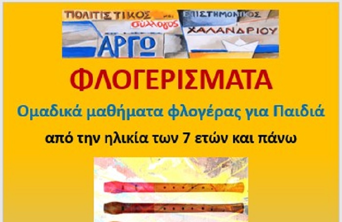 Ο Πολιτιστικός - Επιστημονικός Σύλλογος Χαλανδρίου ΑΡΓΩ ξεκινά ομαδικά μαθήματα φλογέρας από την ηλικία των 7 ετών και πάνω.