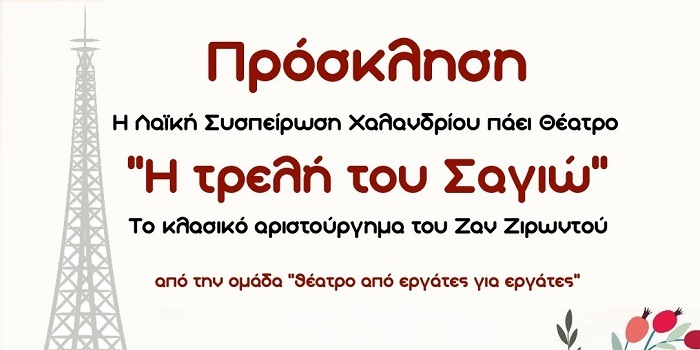 Η θεατρική ομάδα του ΠΑΜΕ σε συνεργασία με τη Λαϊκή Συσπείρωση Χαλανδρίου παρουσιάζουν το κλασικό αριστούργημα του Ζαν Ζιρωντού «Η