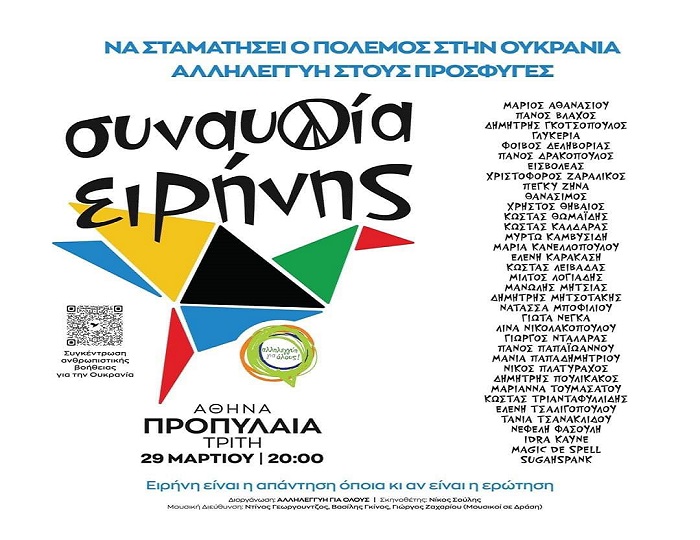 Ο Πολιτιστικός - Επιστημονικός Σύλλογος Χαλανδρίου «ΑΡΓΩ» στη μεγάλη Συναυλία Ειρήνης την Τρίτη 29 Μαρτίου 2022, στις 20:00 στα Προπύλαια.