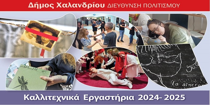 Τα καλλιτεχνικά εργαστήρια του Δήμου Χαλανδρίου, που λειτούργησαν την περίοδο 2024-2025, ολοκληρώνονται τις επόμενες μέρες με σειρά εκδηλώσεων που θα