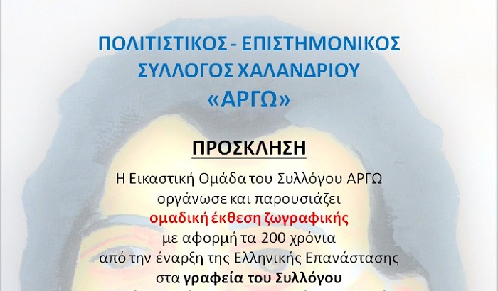 Η Εικαστική Ομάδα του Πολιτιστικού - Επιστημονικού Συλλόγου Χαλανδρίου «ΑΡΓΩ» οργάνωσε και παρουσιάζει ομαδική έκθεση ζωγραφικής, με αφορμή τα 200 χρόνια