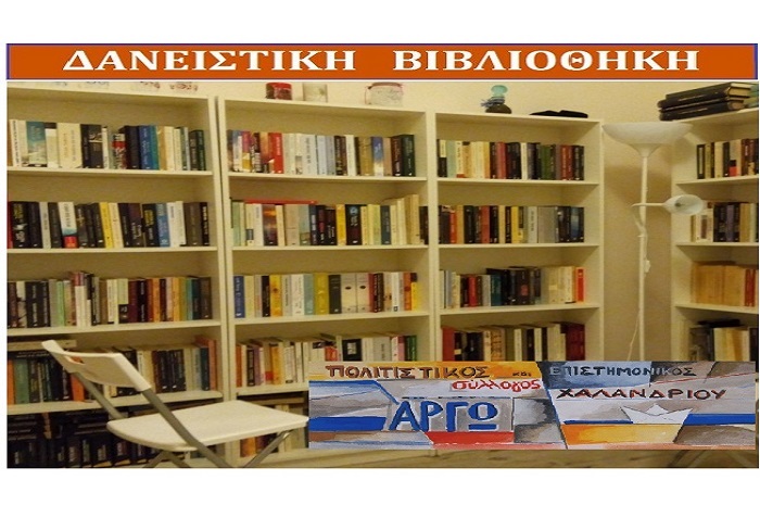 Ο Πολιτιστικός - Επιστημονικός Σύλλογος Χαλανδρίου ΑΡΓΩ ενημερώνει πως η δανειστική Βιβλιοθήκη του θα λειτουργεί στα γραφεία του κάθε Τρίτη, 18:00